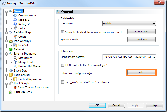 svn 속성의 적용은 아래의 방식대로 하시면 됩니다.