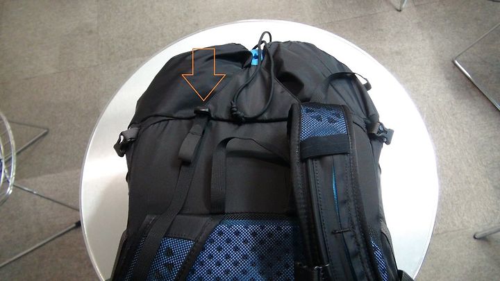 침낭으로 인해 가방이 포화 상태라 배낭 상단에